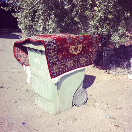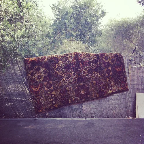 an ongoing collection of photos taken by cell-phone of rugs on things